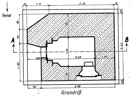 The Groepshelter-Type-P, colloquially referred to as the “Piramide” due to its pyramidal roof structure, was designed to offer emergency shelter for infantry units under bombardment. Constructed with sloped concrete walls to deflect artillery fire, it could accommodate approximately 10 to 12 soldiers in seated or crouched positions.