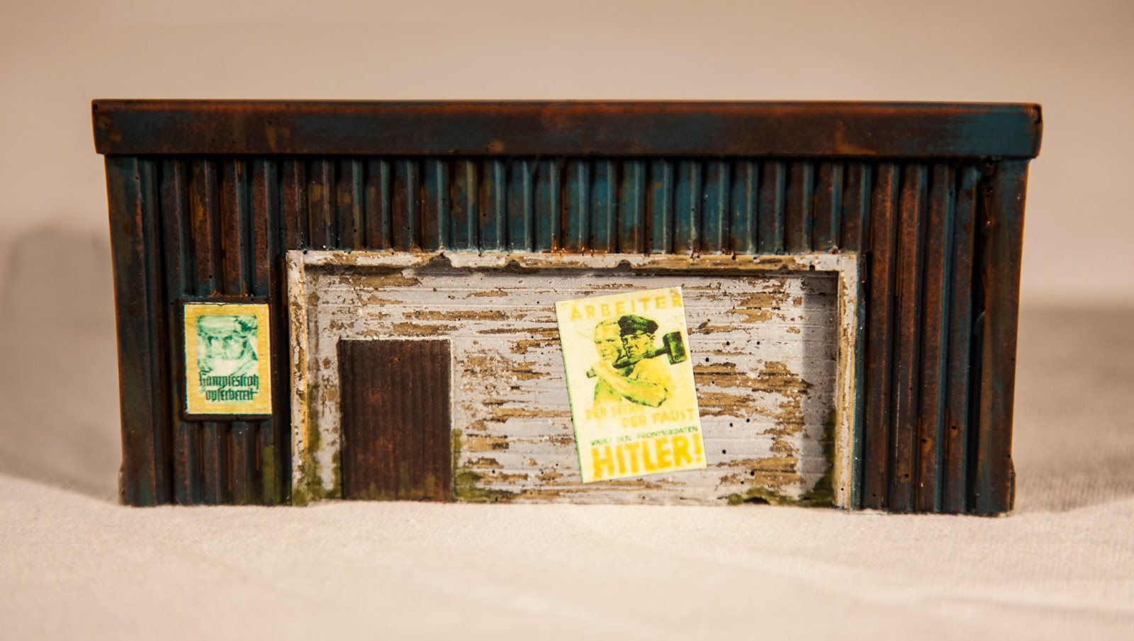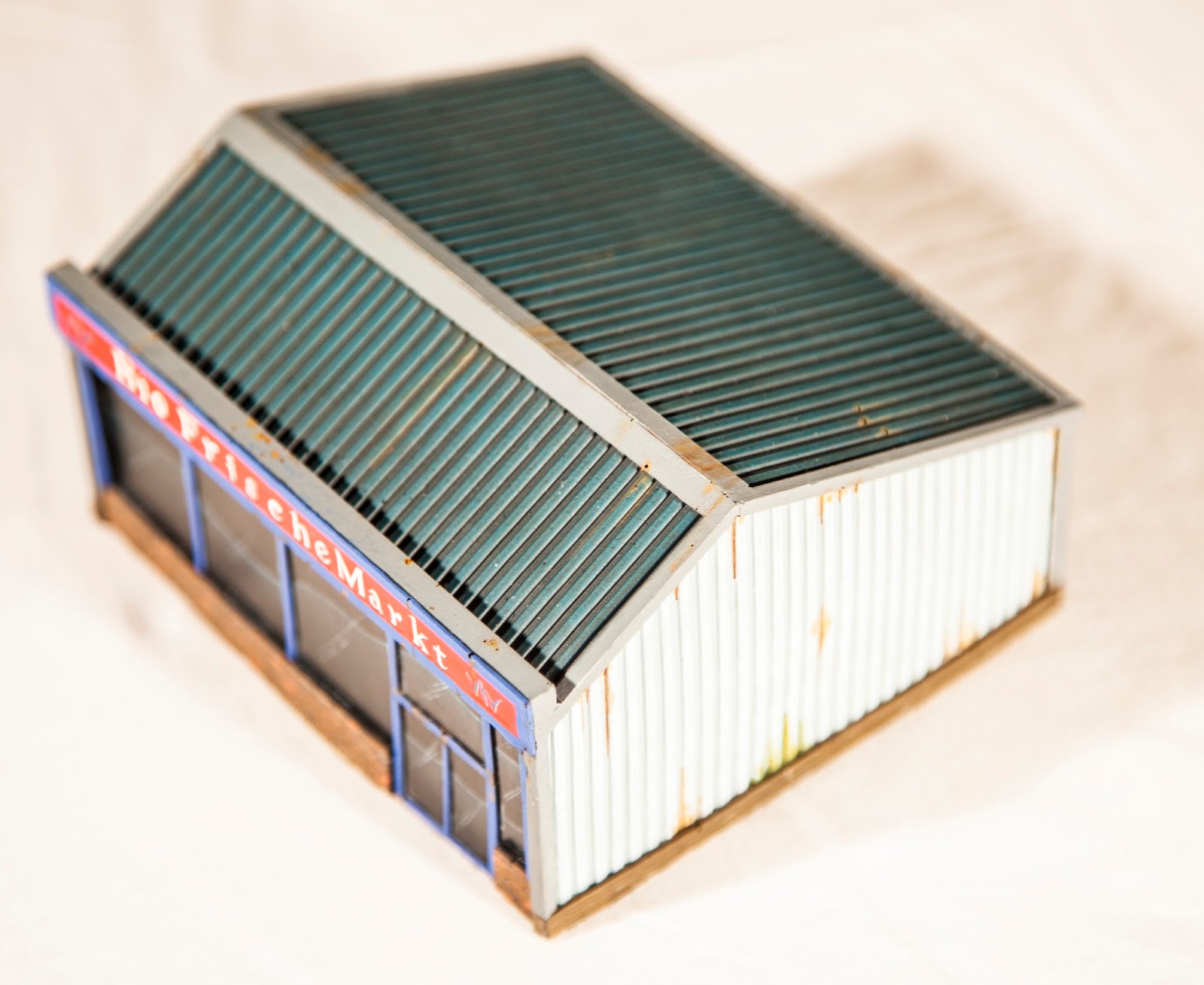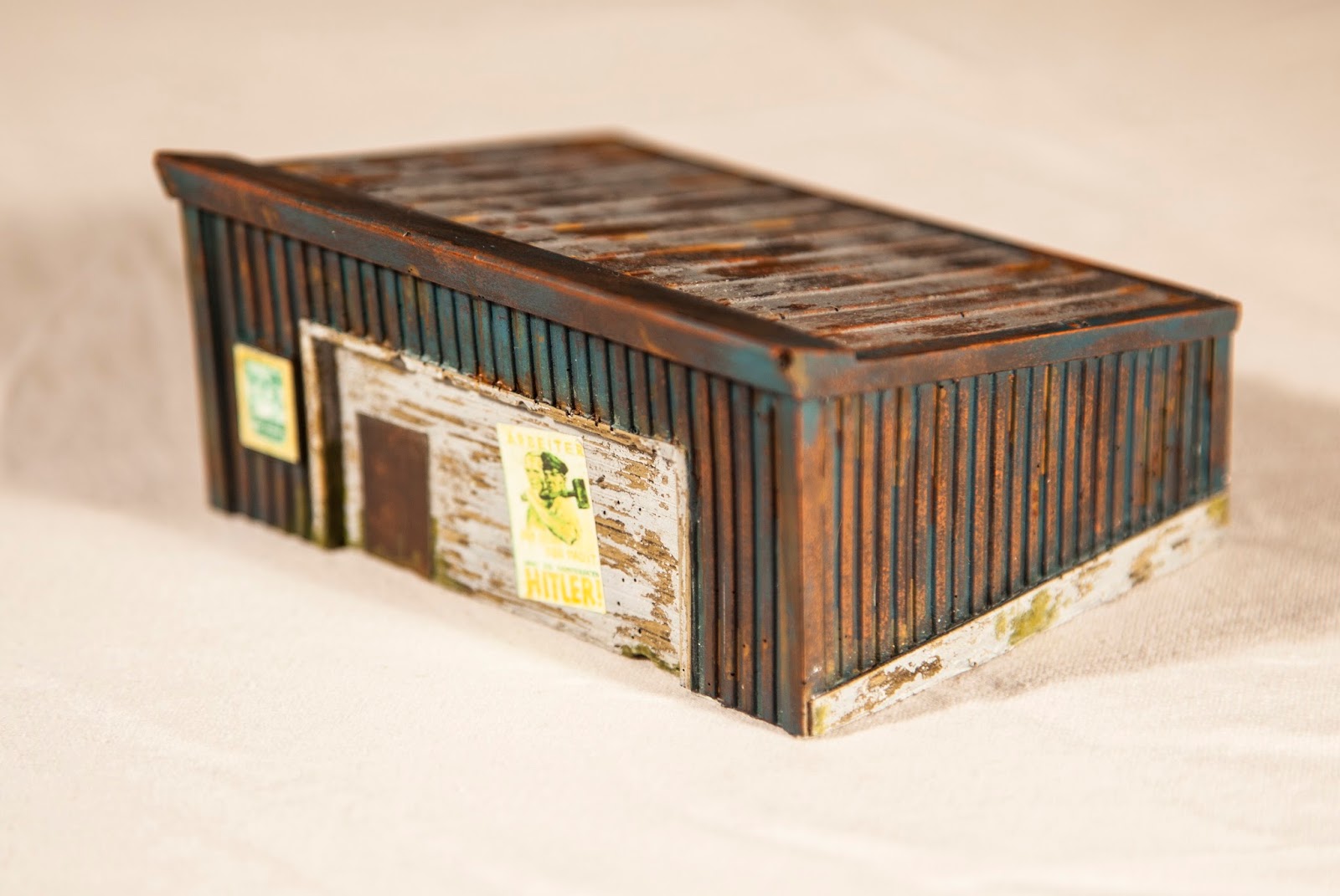 This was the one that I wanted to go to town on. Due to its metal panelled walling and the board and batten roofing all topped off with its plain wooden fronting this provided a lot of opportunity for heavy weathering which I was really keen to try ahead of my plunging into my Dropzone Commander dereliction scenery.