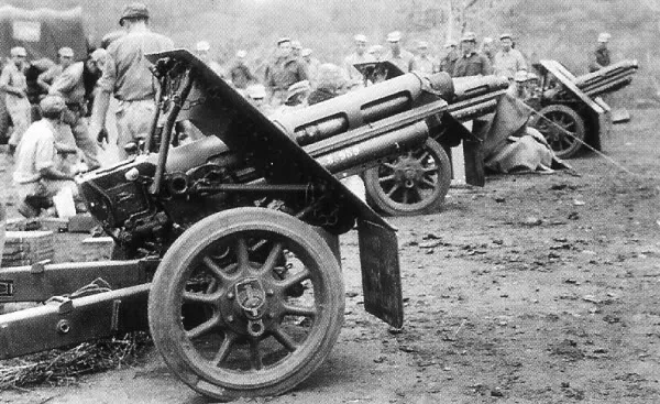 The 10cm leichte Feldhaubitze 18 entered Wehrmacht registers in the mid-1930s as a standard divisional howitzer. Featuring a split trail and improved recoil mechanism, it represented modern German artillery doctrine. Elements were evaluated and indirectly represented in Spain through Condor Legion support and advisory presence, contributing to Nationalist artillery efficiency.