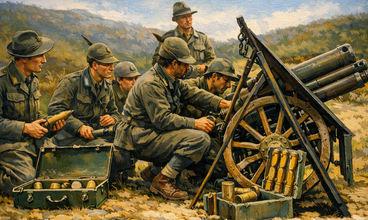The Obice da 75-18 Mod.34 was Italy’s mountain howitzer distilled to essentials: a short 18-calibre barrel, steep elevation, and split trail for awkward terrain. Light, modular, and mule-friendly, it valued angles, portability, and precision over raw range or velocity.